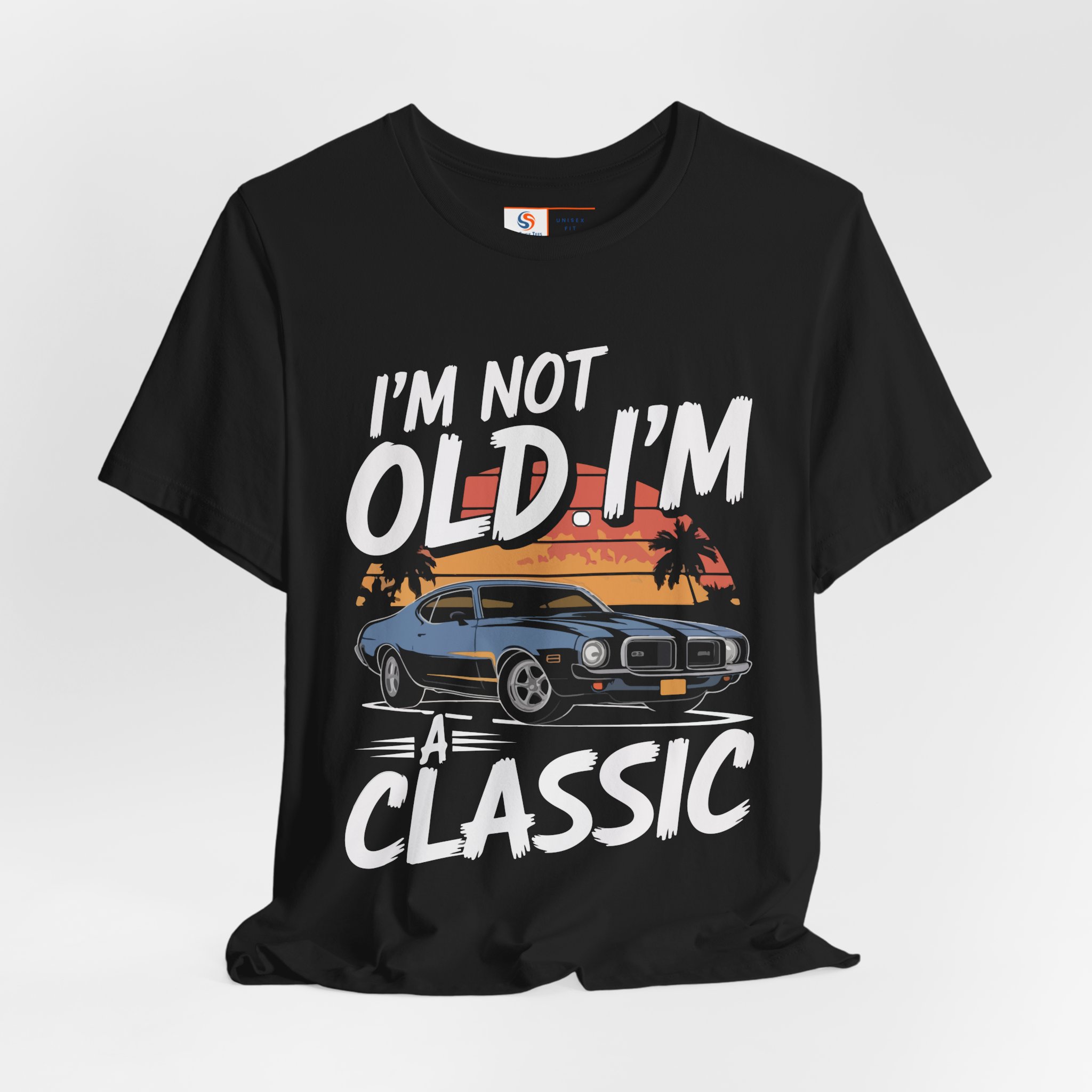 Vintage Car T-shirt with ‘I’m Not Old, I’m Classic’ design, perfect as a gift for a dad. Gives off a nostalgic and timeless vibe, great for casual wear or as a thoughtful present for Father’s Day or Dad’s birthday. Suitable for adults.