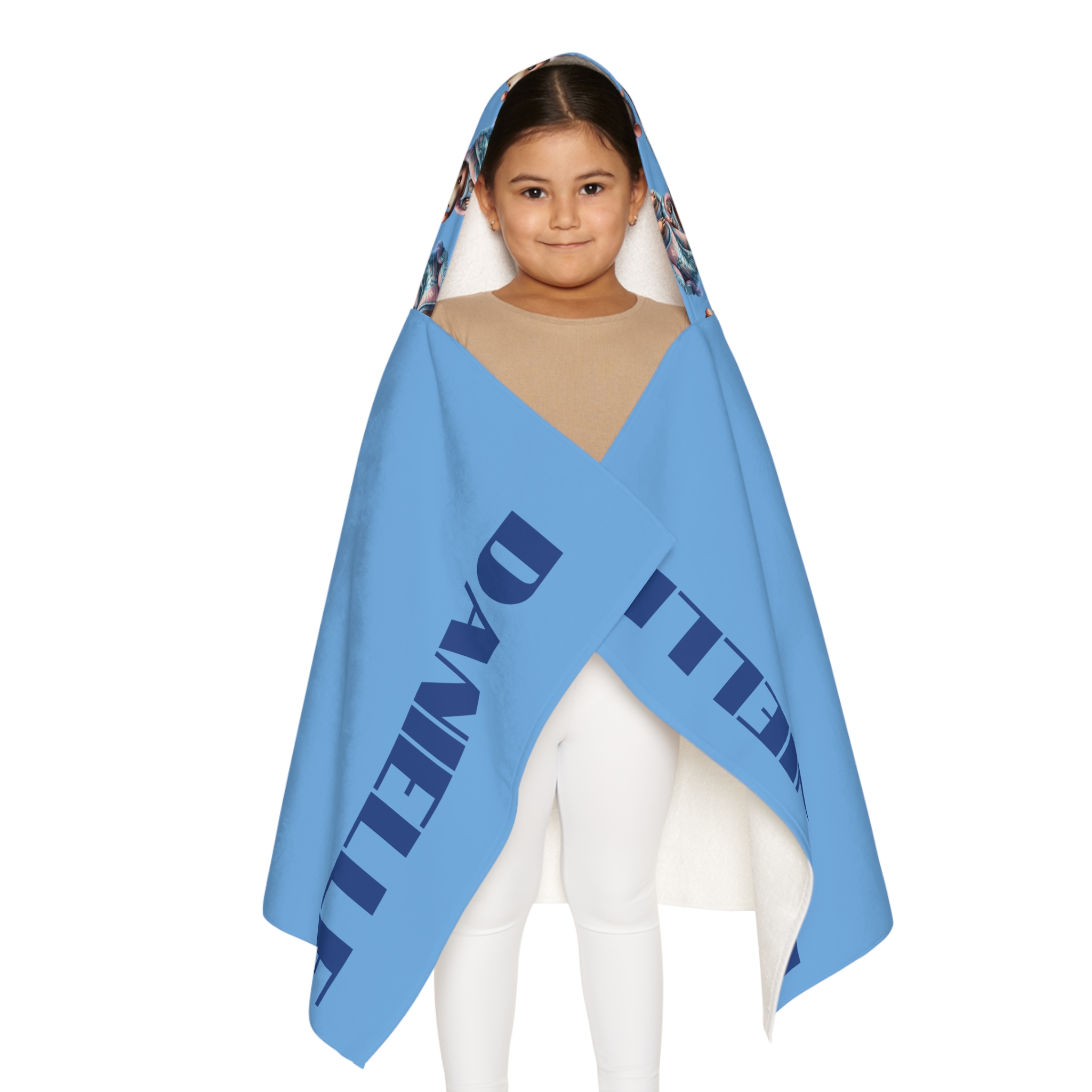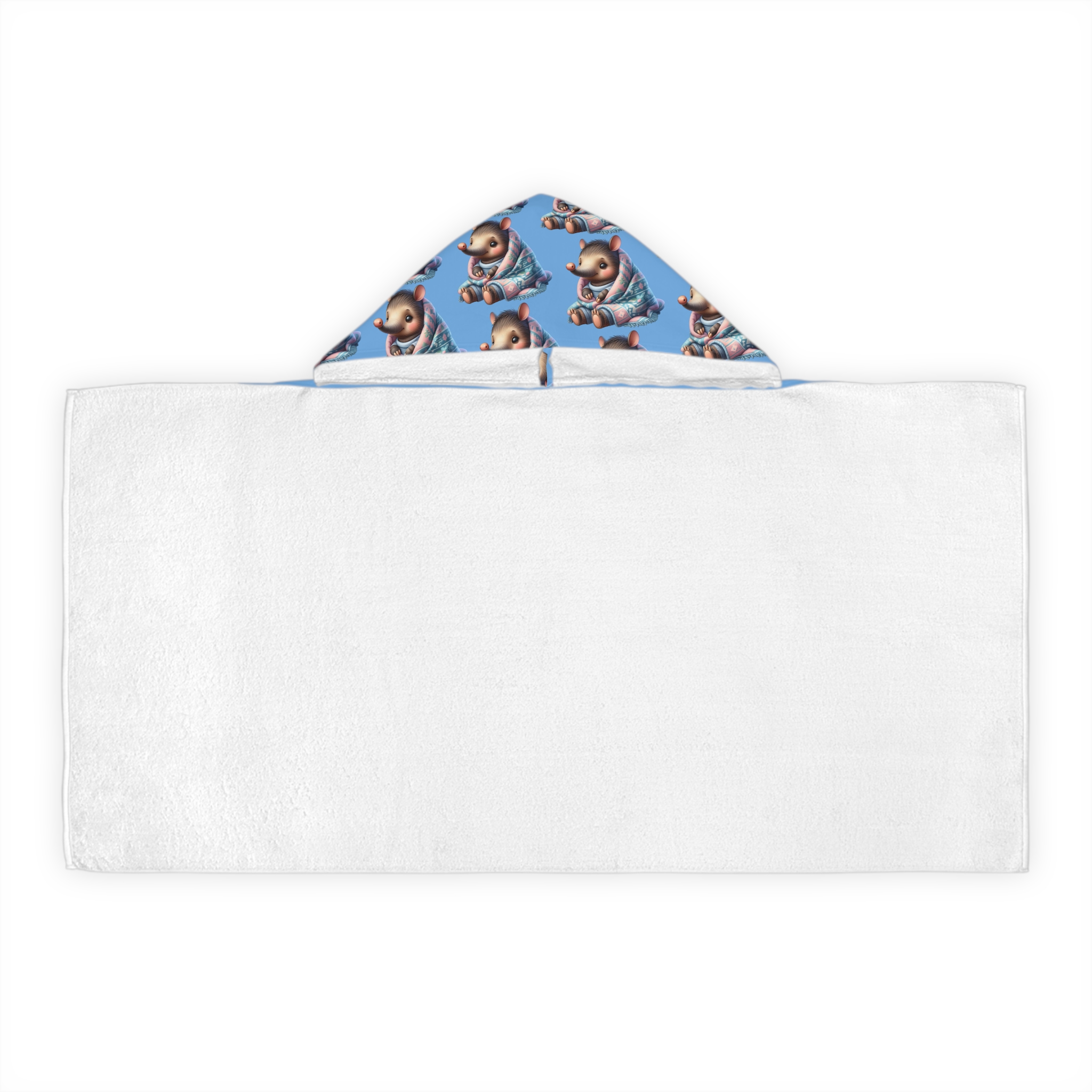 ABOUT THE DESIGN – Personalized – 14 Cute Animal Designs ABOUT THE KIDS HOODED BEACH TOWEL (1) 66% polyester outer layer (2) 34% terry cotton loop lining KIDS HOODED BEACH TOWEL DETAILS (A) Material: 66% polyester (outer-layer), 34% terry cotton loop (lining) (B) One size: 24″ × 48″ (61cm × 121.9cm ) (C) One-sided print…