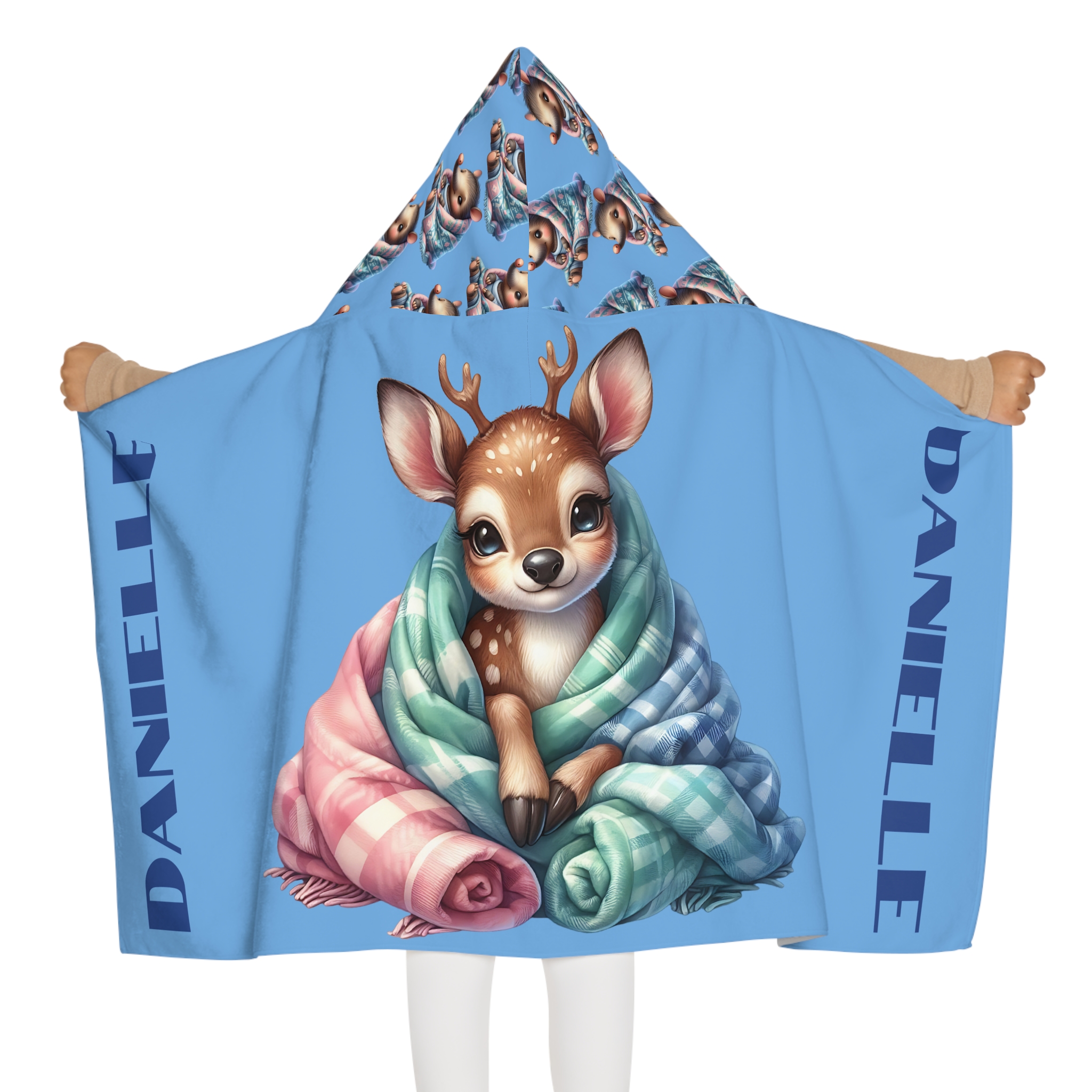 Kid’s Hooded Bath Towel | Kid’s Hooded Beach Towel Poncho | Cute Deer, Animal Kid’s Hooded Towel Robe | Personalized (Blue)